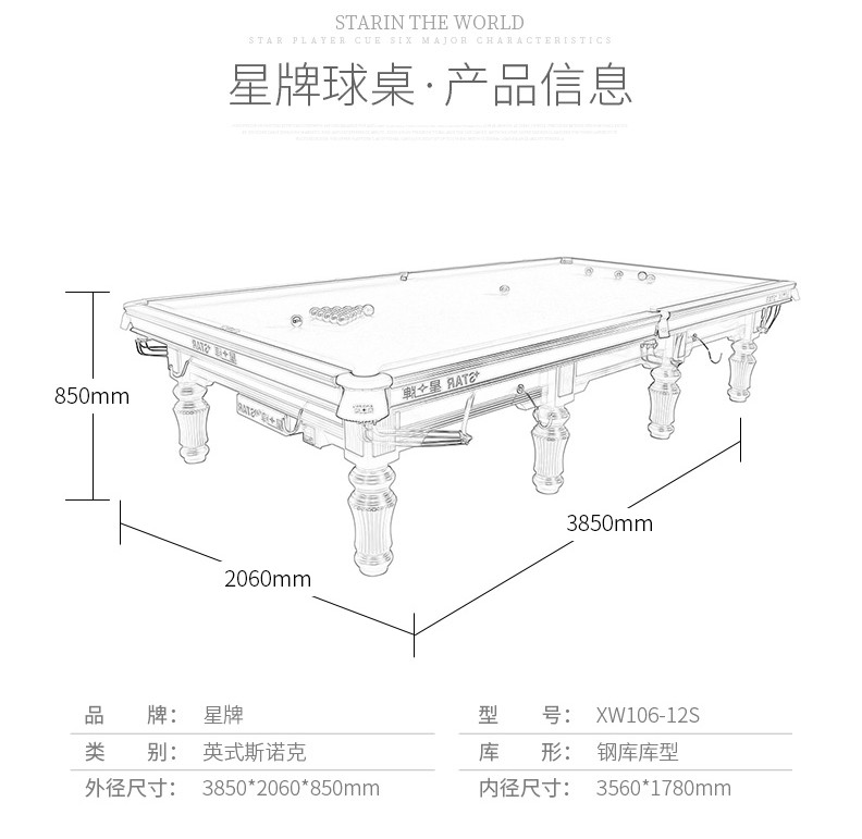星牌 XW106-12S 英式斯諾克台球桌